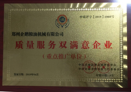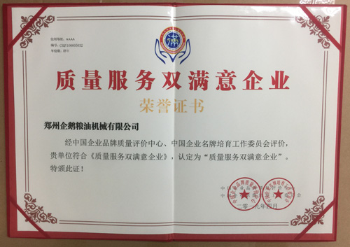 恭賀企鵝榨油機(jī)廠家獲得“質(zhì)量服務(wù)雙滿意”稱號